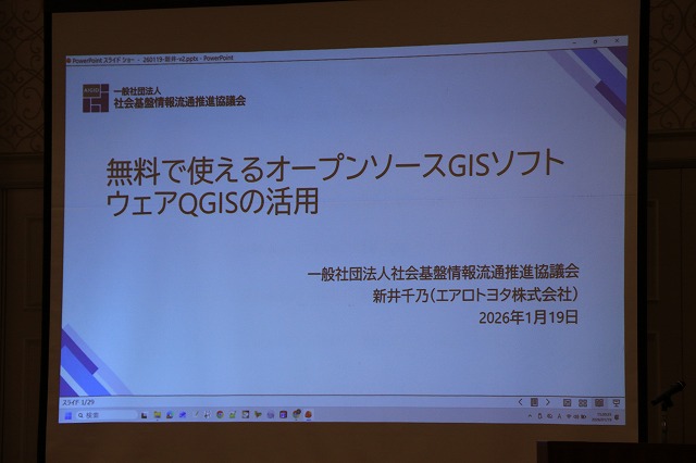講師は一般社団法人 社会基盤情報流通推進協議会(AIGID) 新井千乃様です。