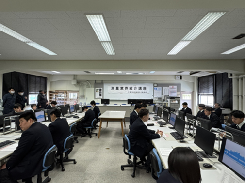 令和8年3月16日(月)千葉県東総工業高等学校建設科の2年生23名(男子19名、女子4名)を対象に「測量業界紹介講座」を実施しました。