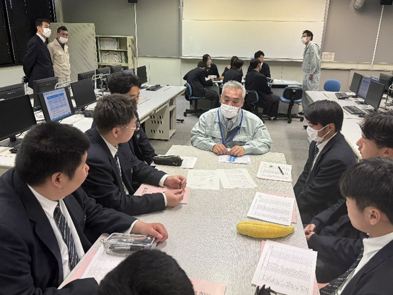 グループディスカッションでは、なぜ測量会社に就職したか?なぜ測量という仕事を続けてこられたか?測量という仕事の良いところ、大変なところ?等、派遣講師より自己紹介の後、生徒より忌憚無き質問があり、講師より説明を行いました。