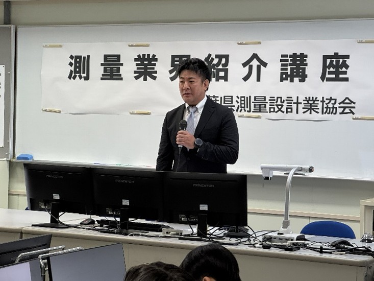 紹介講座では、協会について、測量について、成果物について、測量会社社員の一日、キャリアプラン等について講演しました。